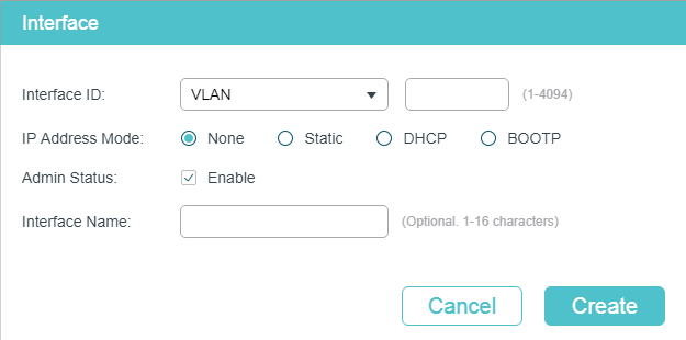 Figure 3-3 Create VLAN Interface 2