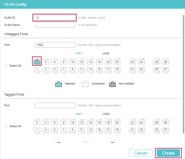 Figure 3-2 Create VLAN 2
